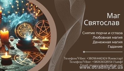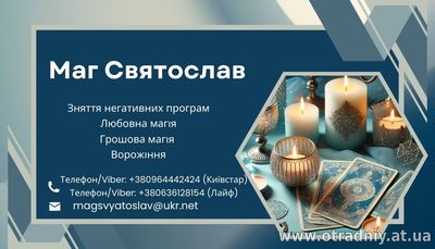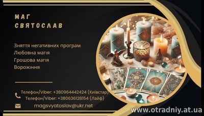 Маг Святослав - майстер езотеричних практик із багаторічним досвідом, який допомагає розв'язувати життєві проблеми та знаходити вихід із найскладніших ситуацій. Його знання та унікальні ритуали дають змогу людя