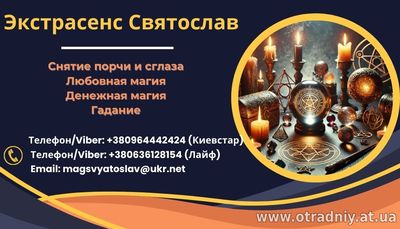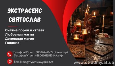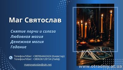 Маг Святослав - професіонал з великим досвідом у сфері езотеричних практик, який надає допомогу в найскладніших життєвих ситуаціях. Святослав володіє безліччю унікальних видів ритуалів і обрядів, які доп