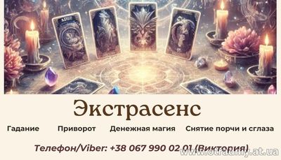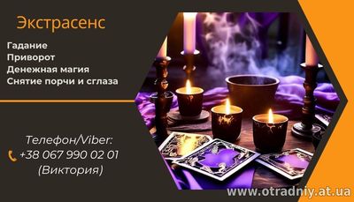 Не знаєте, як вирішити свої проблеми? Відчуваєте, що у вашому житті з'явився негатив? Я - Вікторія, екстрасенс, ясновидиця і таролог, з радістю допоможу вам знайти гармонію, захист і впевненість у майбутньому.