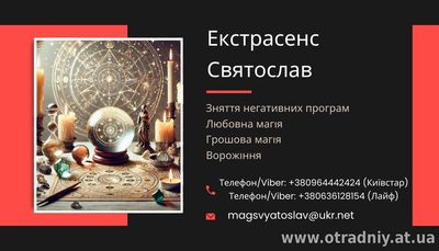 Хочете змінити своє життя на краще? Знайти кохання, знайти багатство, захиститися від негативу або нарешті реалізувати свої мрії? Маг Святослав готовий вам допомогти! Святослав - досвідчений майсте