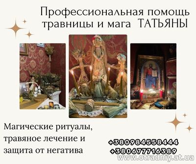 Услуги мага и травницы в Киеве: помощь в снятии порчи, сглаза, проклятий, проведение любовных обрядов, гадания, изготовление амулетов, лечение травами и многое другое. Татьяна, специалист по магии и эзотерике,