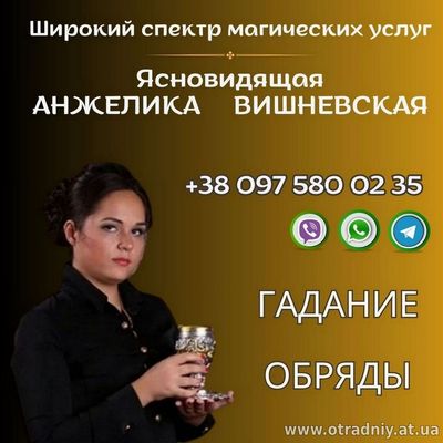 Спадкова провісниця, ясновидиця в 10 поколінні, з давнього роду Дошкещі Анжеліка Вишневська допоможе у вирішенні важких життєвих ситуаціях!!!